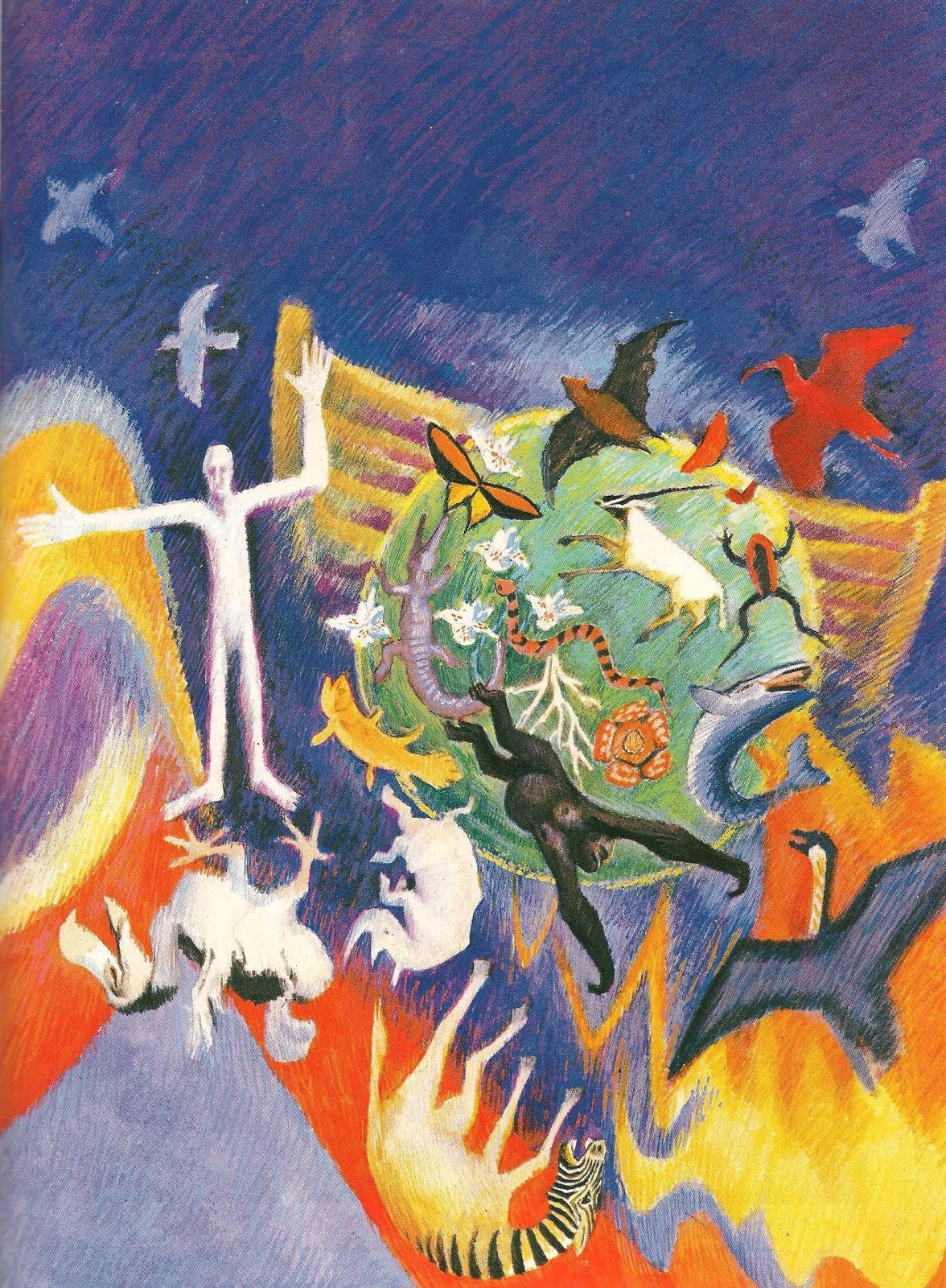 Tableau : Jonathan Kingdon (couverture du livre de Lee Durrell, State of the Ark; Gaia Books Limited, 1986) http://www.gallery-pangolin.com/artists/jonathan-kingdon